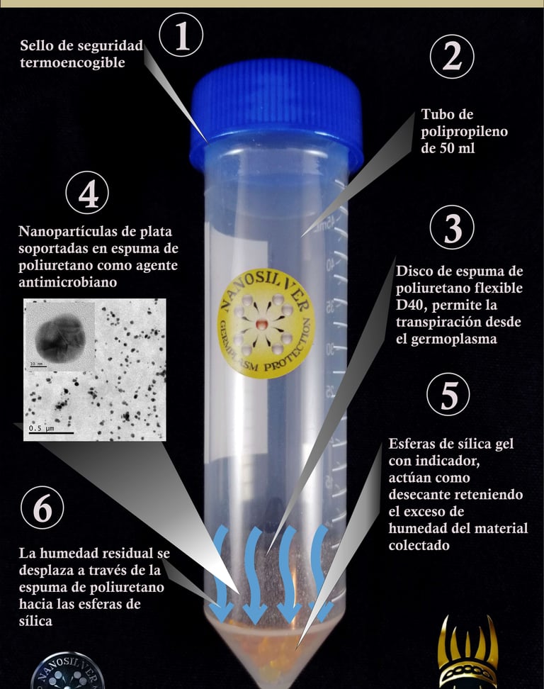 Estos discos de poliuretano soportados con nanopartículas de plata promueven una actividad fungistática y fungicida, destruyendo la membrana de hongos fitopatógenos y deteniendo al mismo tiempo su crecimiento sobre las semillas y frutos colectados, permitiendo un mejor almacenaje del germoplasma.