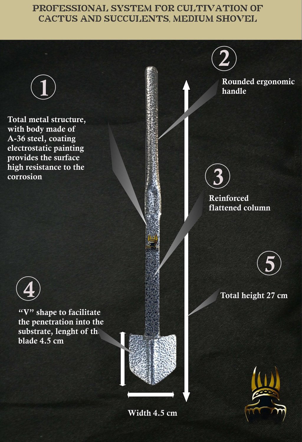 Carry out the work of transplanting and extracting cacti, caudex and small succulents with this robust and functional tool, making the work easier and speeding up the process. It removes a greater amount of substrate and allows for larger spaces in the substrate.