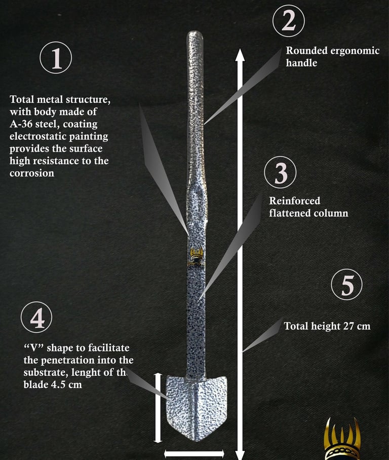 “V” shape to facilitate penetration into the substrate. Blade lenght 4.5 cm